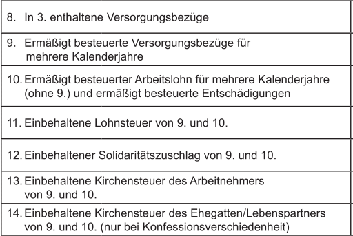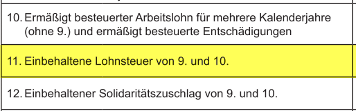 - Lohnsteuer zu Versorgungsbezügen / Arbeitslohn für mehrere Jahre (Zeile 11)