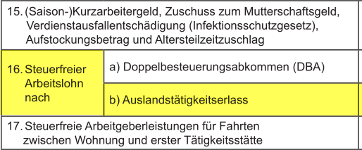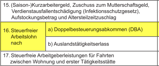 - Steuerfreier Lohn nach DBA oder ATE (Zeile 16)