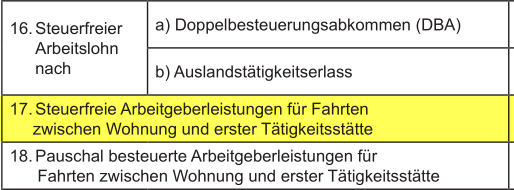 - Steuerfreie Erstattungen für Fahrtkosten (Zeile 17)