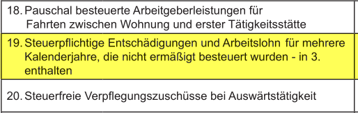 - Nicht ermäßigte Entschädigungen / Lohn für mehrere Kalenderjahre (Zeile 19)