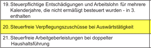 - Steuerfreie Verpflegungszuschüsse (Zeile 20)