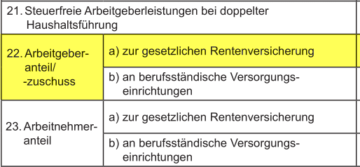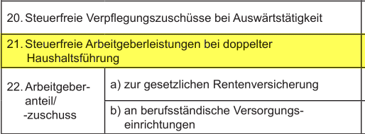 - Steuerfreie Erstattungen bei doppelter Haushaltsführung (Zeile 21)
