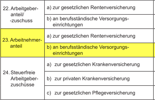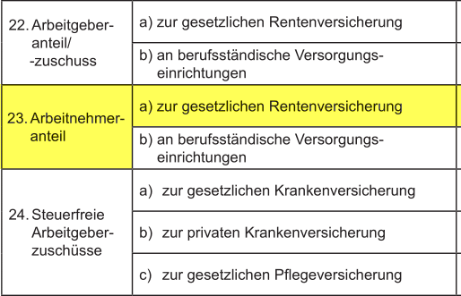 23. a) Arbeitnehmeranteil zur gesetzlichen Rentenversicherung