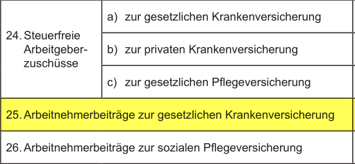 25. Arbeitnehmeranteil zur gesetzl. Krankenversicherung