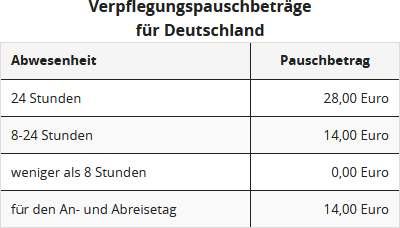 - inklusive Werbungskosten bei Reisetätigkeit/Auswärtstätigkeit