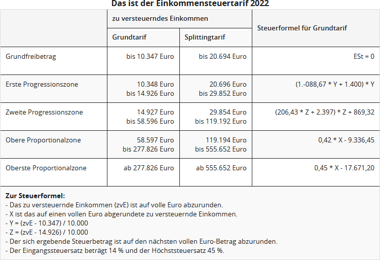 Zum Ausgleich der kalten Progression und zur Verhinderung einer schleichenden Steuererhöhung werden die Eckwerte des Steuertarifs 2022 um die geschätzte Inflationsrate erhöht, d.h. "nach rechts" verschoben, und zwar um 1,17 Prozent (2021:1,52 Prozent).