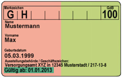 - Menschen mit dem Merkzeichen "aG“, mit dem Merkzeichen "Bl“, mit dem Merkzeichen "TBl“ oder mit dem Merkzeichen "H“.