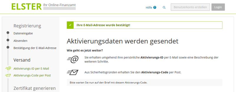 - Aktivierungsdaten erhalten: Das Finanzamt stellt Dir Aktivierungsdaten per E-Mail und per Post zu.