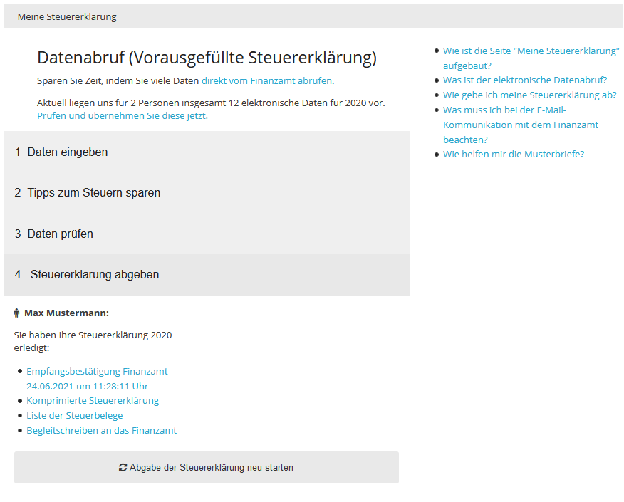 Erhältst du eine Empfangsbestätigung für die Abgabe Deiner Steuererklärung?