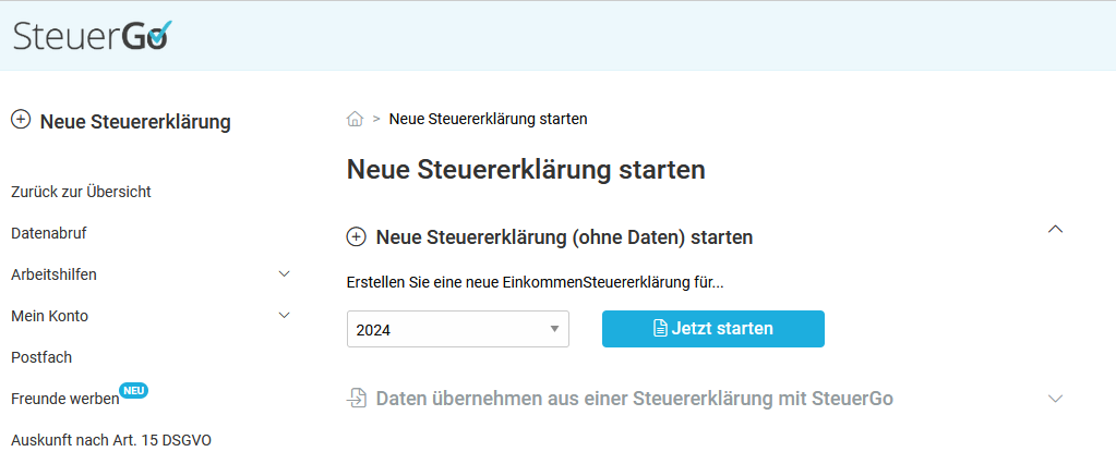 Neue Steuererklärung starten