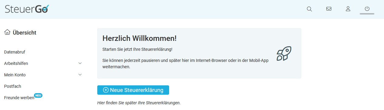 Klicke auf der Seite "Übersicht" auf "Neue Steuererklärung starten".