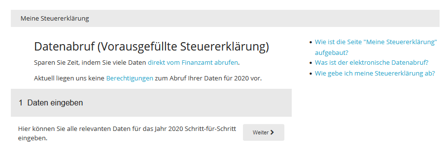 Über die Seite "Meine Steuererklärung" siehst du sofort, ob elektronische Daten für dein Kundenkonto bereitstehen.