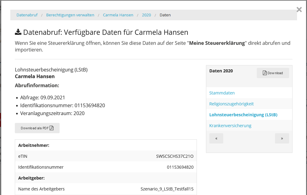 Danach kannst du für jeden vorliegenden Datensatz individuell entscheiden, ob du die Daten in deine Steuererklärung übernehmen willst. Alternativ kannst du dir den Inhalt eines Datensatzes auch nur online ansehen oder als PDF-Datei herunterladen.