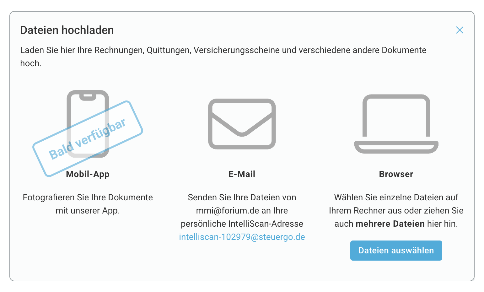 - Mobil-App: Fotografiere Dokumente mit deinem Smartphone. (In Kürze verfügbar)