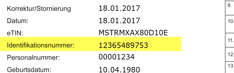 Liegt der Wohnsitz in Deutschland, muss zusätzlich die Identifikationsnummer des Empfängers angegeben werden