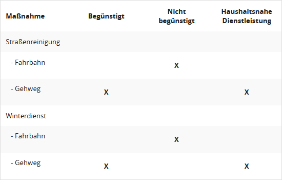 Grundsätzlich ist Voraussetzung für den Abzug der Kosten, dass diese im Zusammenhang mit dem eigenen Haushalt stehen. Verschiedene Tätigkeiten werden aber sowohl auf dem Privatgrundstück als auch auf öffentlichem Gelände ausgeführt oder sie kommen dem privaten Haushalt zumindest mittelbar zugute, auch wenn sie in erster Linie den öffentlichen Bereich betreffen. Dazu gehören zum Beispiel die Gehwegreinigung oder das Schneeräumen.